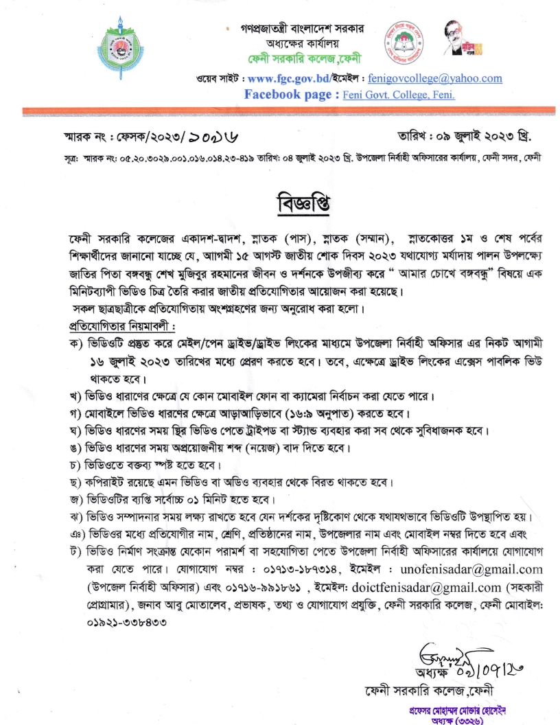 আমার চোখে বঙ্গবন্ধু বিষয়ে এক মিনিটব্যাপী ভিডিও চিত্র তৈরি সংক্রান্ত বিজ্ঞপ্তি